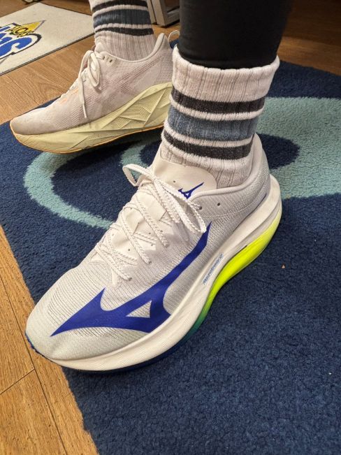 他にはアディダスのEvo SLやニューバランスのFuelCell Rebel v5なども試着してみたんですが、ボメロプラスが一番しっくりくるということでこの子に決定◎