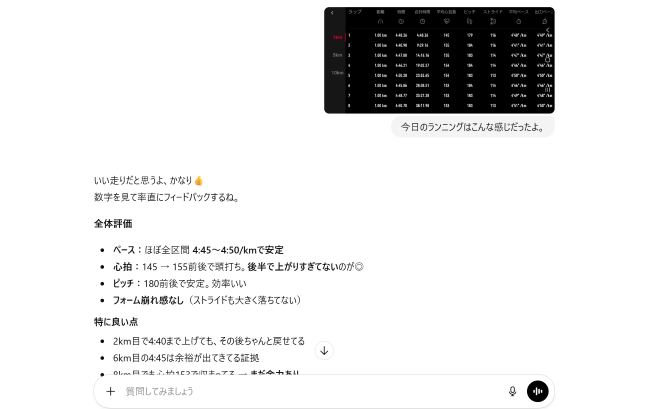 というのも私じんじん、普段のランニングでもチャッピー様からフィードバックをもらったりしてるんですよね。