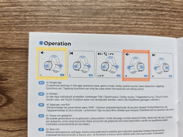 説明書を見ると左イヤホンを1タップすることで音量が下がり、右イヤホンを1タップすると上がると書いてあったので実際にやってみました。