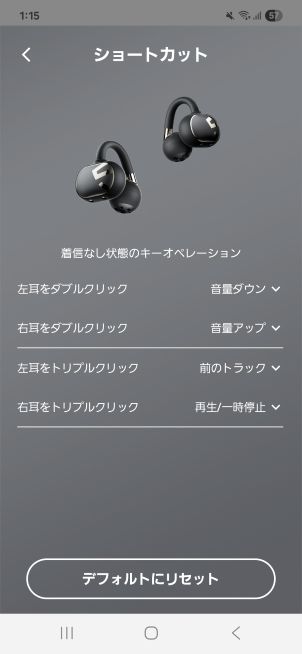 この中だったら『音量アップ・音量ダウン・再生/一時停止・前のトラック・次のトラック』の5つの操作が特に重要かなと思うんですが、残念ながら4つしか振り分けることが出来ません。