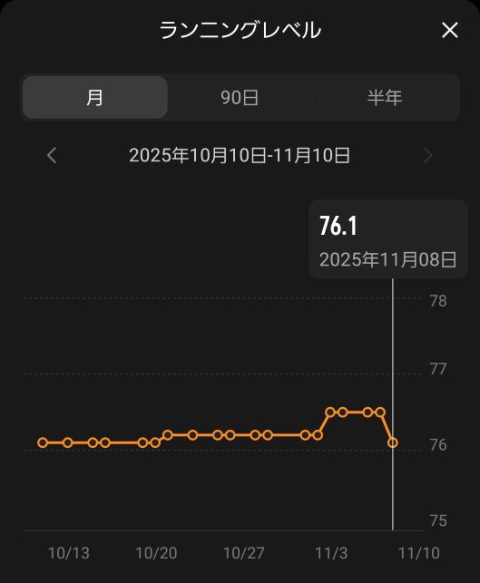 あとフルマラソンの予測タイムが11月に入って5秒早くなったみたいです笑
